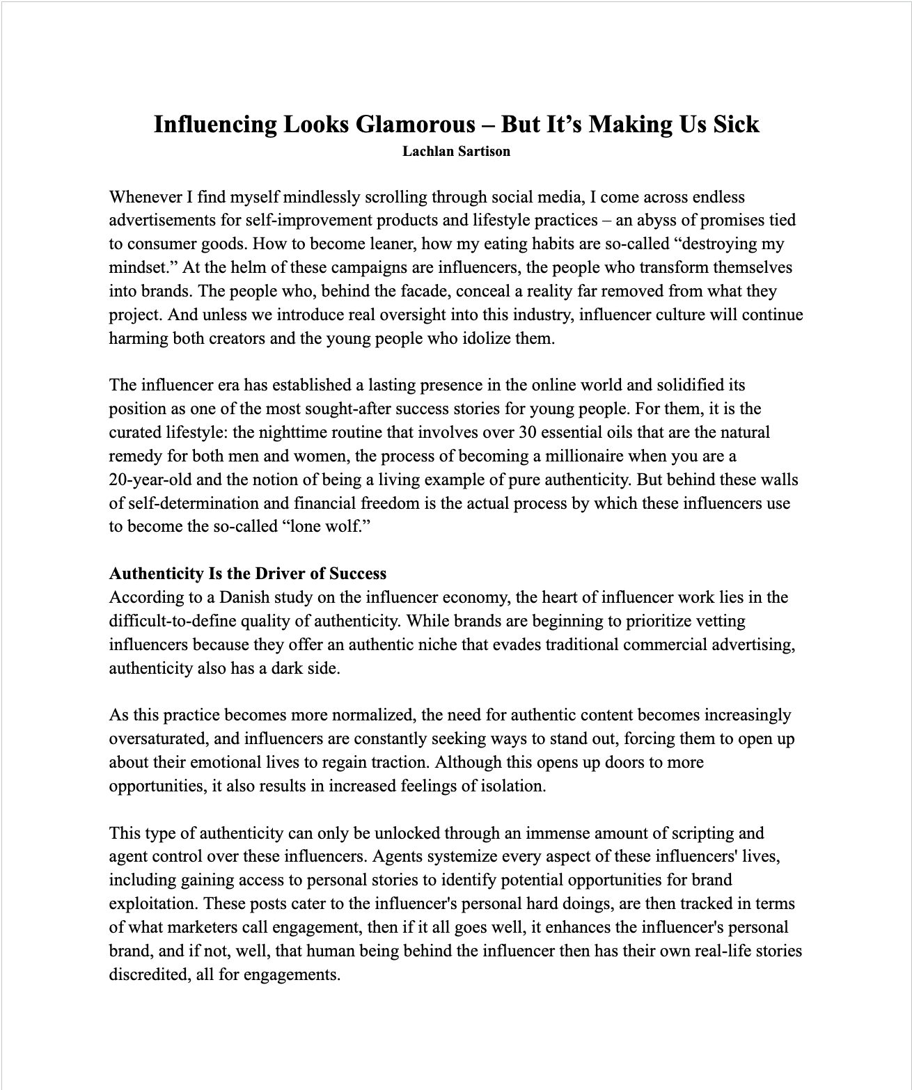 Op-ed: Influencer Culture